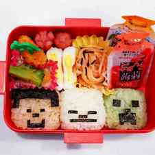 マインクラフト Minecraft のキャラ弁当とブラックハヤテ号おにぎり 運動会のお弁当 めろんカフェ キャラ弁当 弁当 お弁当